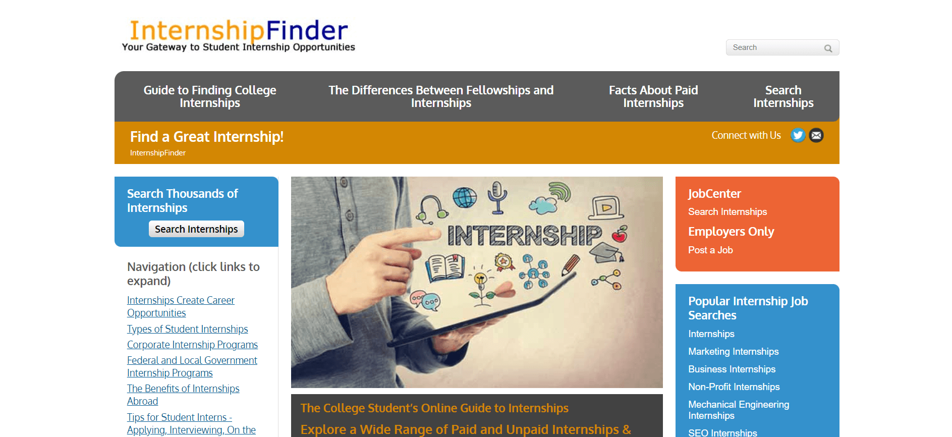 InternshipFinder is a job board and resource platform that specializes in providing internship opportunities for students and recent graduates. It serves as a directory of websites dedicated to internships, co-ops, and externships, offering a variety of listings and resources to help users find suitable positions. The website aggregates internship postings from various sources, including social media pages, where many companies post their internship opportunities. Internship-focused websites and social media are increasingly becoming a dominant force in the internship search process due to the shift towards online job hunting.InternshipFinder also provides useful tips and tricks for securing internships and allows users to link directly to internship posts. The platform is designed to bring more information to job seekers than ever before, making it easier for them to connect with potential employers and apply for positions. Furthermore, the site contains a job board with hundreds of options for potential internships and employment, along with constantly updated information to assist in the internship search. The website is popular among college students and is known for its user-friendly interface and comprehensive listings. It is considered one of the best resources for finding internships, offering a centralized place where students can explore a wide range of opportunities and gain valuable experience in their field of interest.