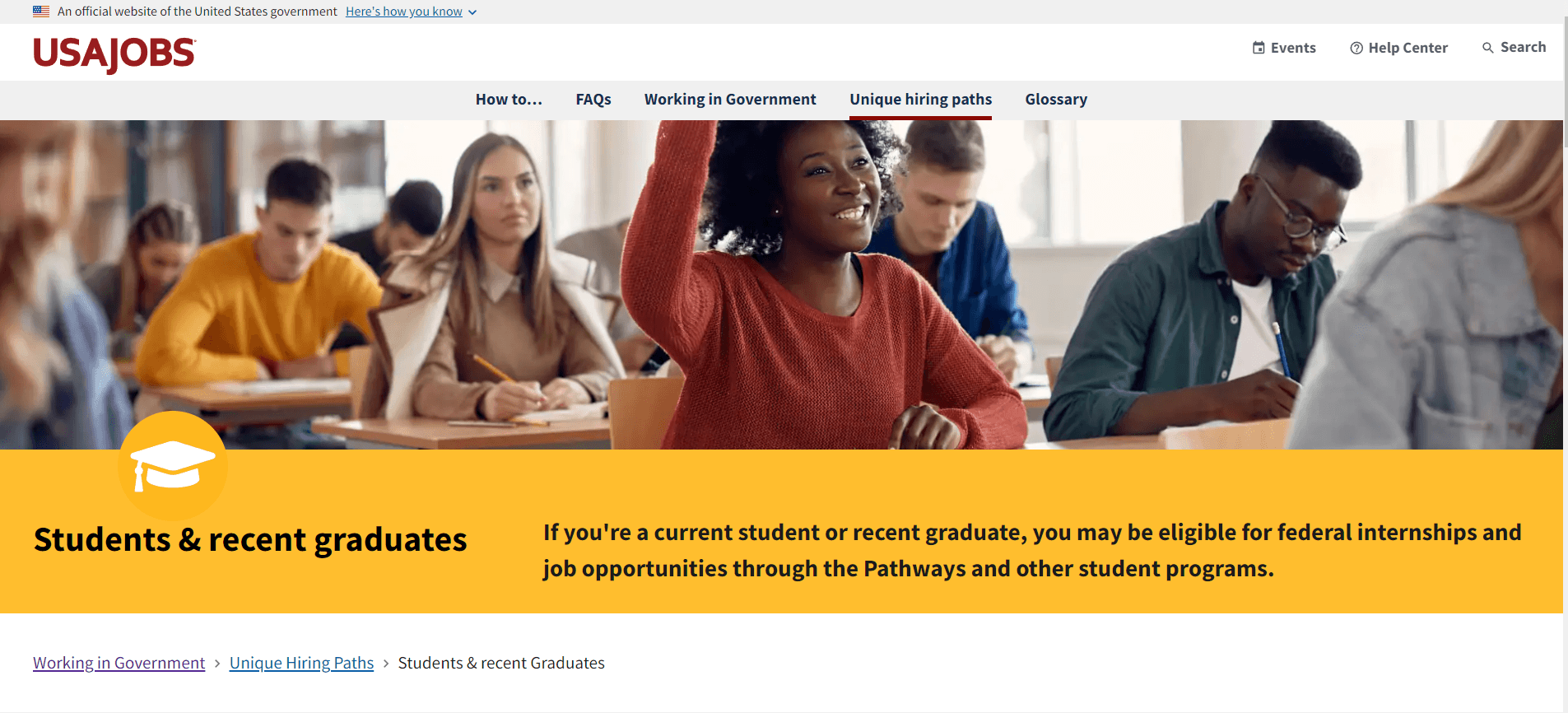 USAJobs is the official employment site for the United States federal government. It serves as a centralized platform where job seekers can find and apply for various types of positions, including internships, across multiple federal agencies and departments. USAJobs is a valuable resource for those seeking internship opportunities within the federal government, providing a broad range of listings and tools to aid job seekers in finding and applying for internships that align with their skills and interests.The website features an array of internship opportunities that cater to different groups, including students, recent graduates, veterans, military spouses, and individuals with disabilities, among others. These internships can be found in U.S. embassies and consulates around the world, as well as in various bureaus located in Washington, D.C., and other domestic offices. The internships aim to provide substantive learning experiences in a foreign affairs environment and can include a range of duties, from participating in meetings with senior officials to supporting events and drafting reports.USAJobs also offers unique hiring paths to help hire individuals who represent the diverse society of the U.S. The internship listings on the site include both paid and unpaid opportunities, with the majority being paid positions. Job seekers can search for internships using filters and can apply online only with a complete USAJobs profile. The site provides detailed information on how to apply for each position, including the position title, series, grade, location, and application instructions