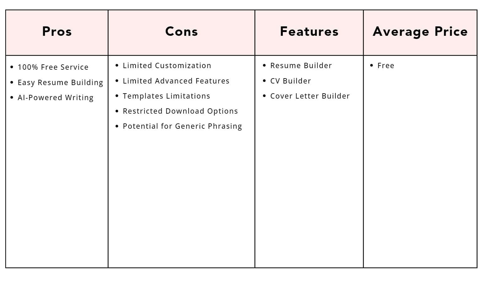 Let's take a quick look at its pros and cons before wrapping up:Pros of Free Online Resume Builders
