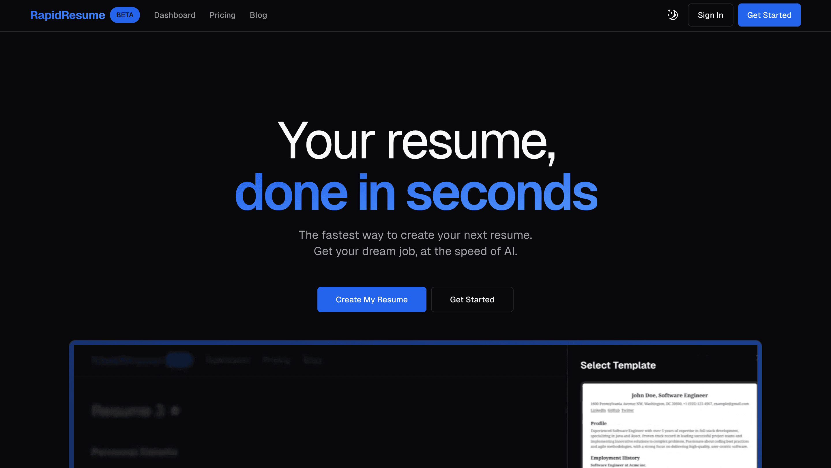 Rapid Resume is a professional resume builder powered by AI that allows users to quickly create customized and impactful resumes. It helps address the challenges and uncertainties often associated with resume writing, enabling users to focus on highlighting their unique skills and qualifications to potential employers. The main objective of Rapid Resume is to assist every client in securing their dream job by providing them with a standout resume of exceptional quality. With the advanced AI resume builder, job seekers can confidently embark on their job search journey, knowing they have a powerful tool to maximize their chances of success.Rapid Resume has developed a resume builder that is 10 times faster than any competition, allowing candidates to create their resumes more quickly compared to traditional methods. By utilizing professional and up-to-date resume templates, the tool enables individuals to effectively showcase their achievements, attitudes, personalities, and skills, empowering them to confidently present their professional stories. Additionally, the resumes generated by Rapid Resume are tailored to match specific job descriptions. The platform also provides real-time feedback through AI Recruiter's Analysis, offering comprehensive support for job seekers.Furthermore, the Rapid Resume platform offers an automatic proofreading feature that helps identify and fix grammatical errors in your resume. This feature ensures that your resume is error-free and presents a professional image to potential employers.
